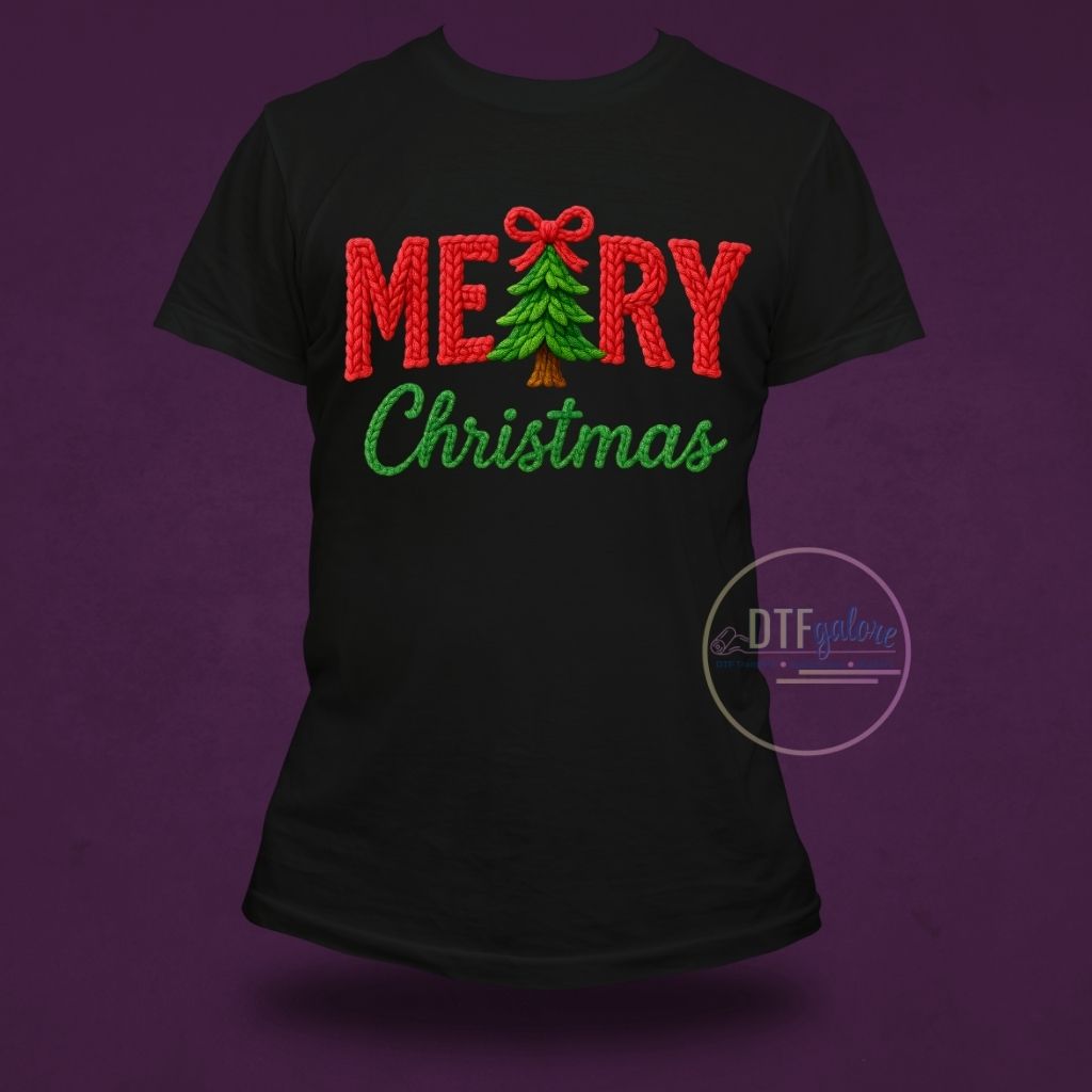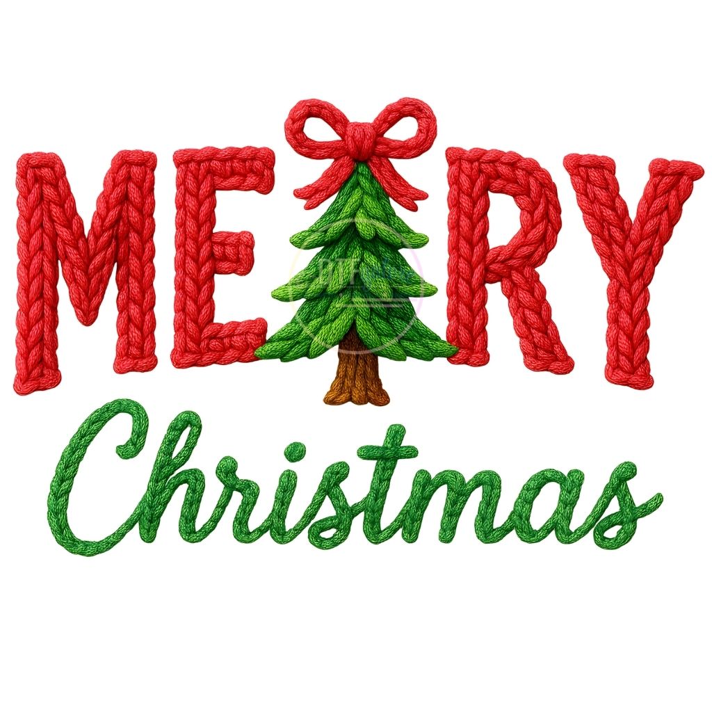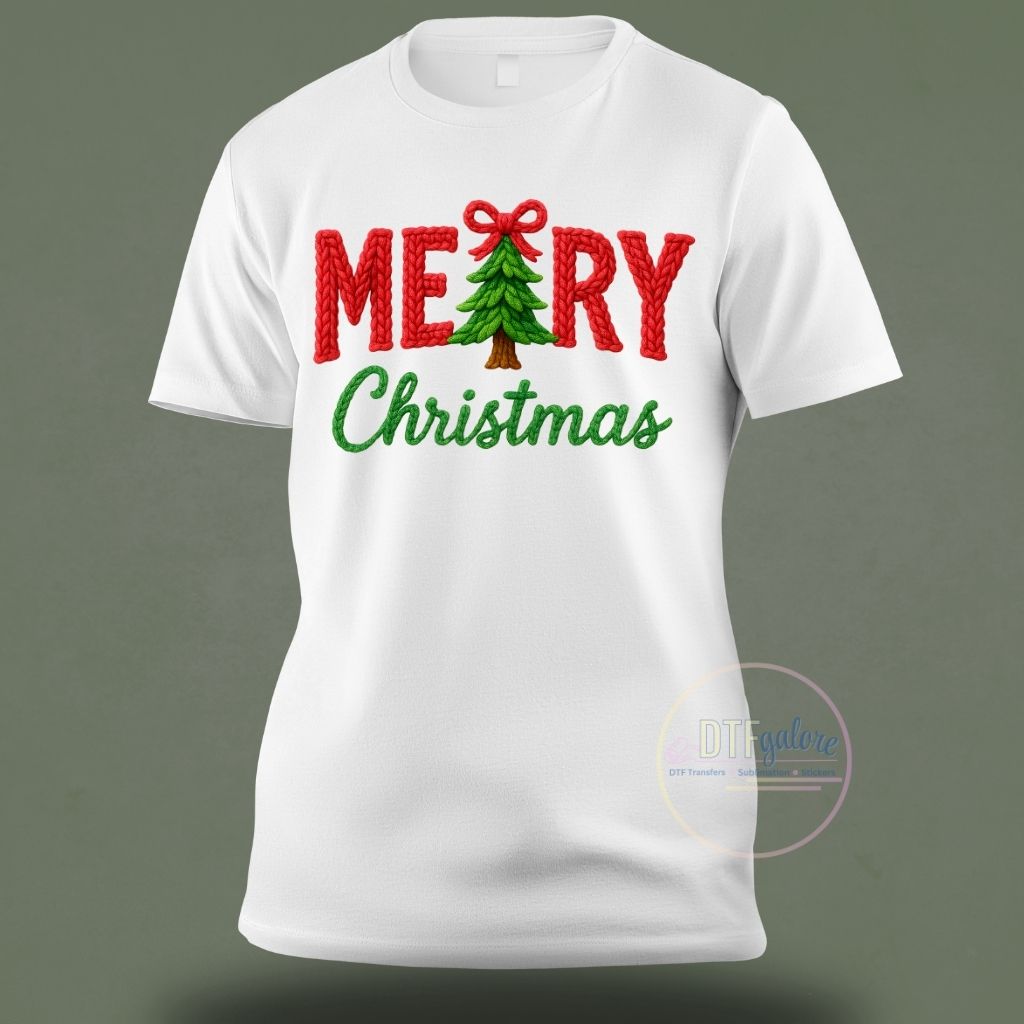 Christmas DTF Transfer- Merry Christmas Tree crochet