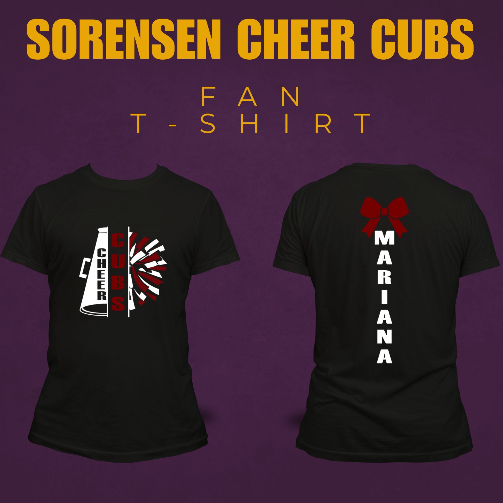 Support the Sorensen Cheer Cubs with this exclusive fan T-shirt — perfect for parents, siblings, and all proud supporters. Designed with high-quality DTF printing and glitter accents that sparkle under the lights, this shirt is made to stand out at every game and event.