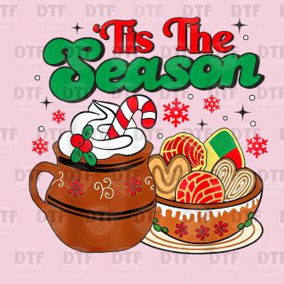This Christmas "Tis the season pan y chocolate DTF transfer" is printed using high-quality inks for vibrant colors and a soft, smooth feel. Perfect for holiday shirts, school events, family outfits, Christmas parties, and small business orders.